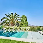 Vous pourrez également admirer la vue sur la piscine en séjournant ici. Cette villa présente une salle de bains avec un bidet, une douche à l'italienne et une toilette séparée. Vous pourrez également profiter de la commodité d'un sèche-cheveux et des draps de bain.